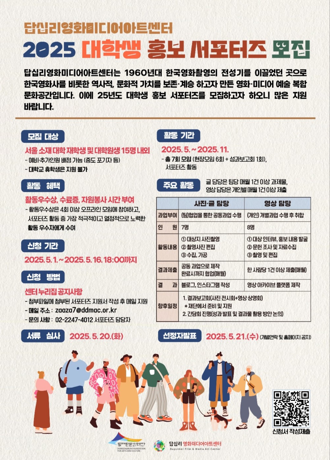 답십리영화미디어아트센터 대학생 홍보 서포터즈 모집 포스터