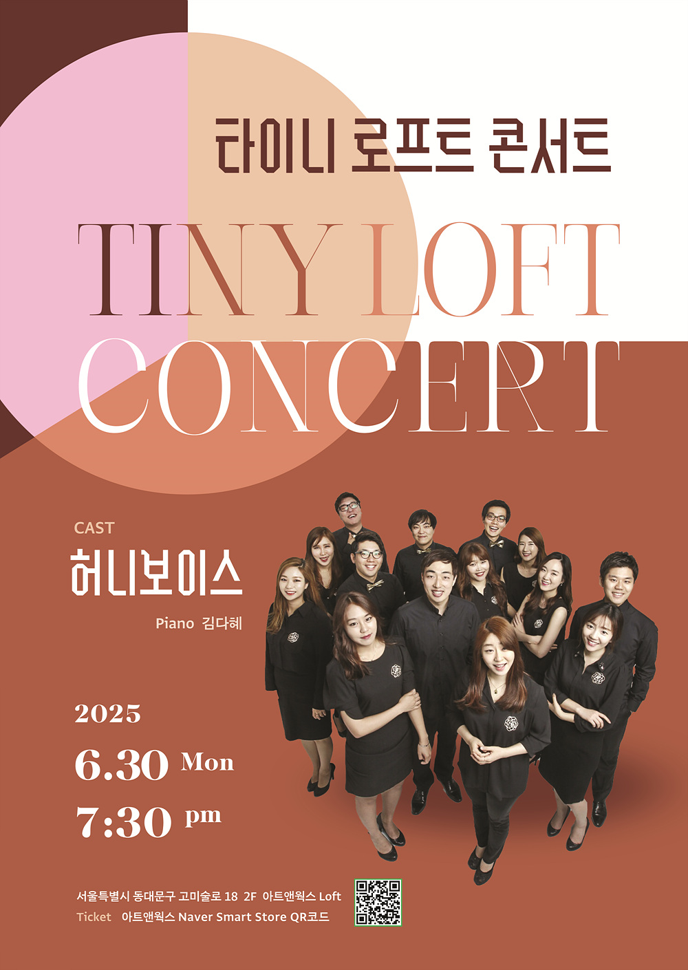 타이니 로프트 콘서트 2025년 6월 30일 (월) 오후 7시30분 타이니 로프트 콘서트 2025년 6월 30일 (월) 오후 7시30분아트앤웍스 2층 로프트Cast 허니보이스 (piano 김다혜) Tiny Loft Concert 2025.06.09